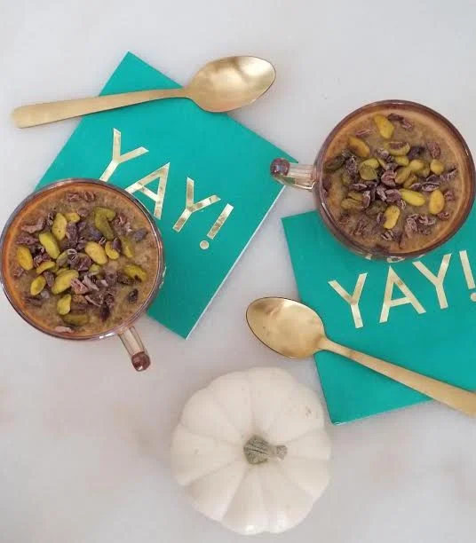 So the holidays are almost here and you're thinking to yourself "I want treats but I also want to rock my New Years dress!" Well guess what? You can have both! AND I almost guarantee that if you make my "Chocolate Chippendale" + "Pumpkin Pie Party" chia puddings at your next holiday get-together you'll be bombarded for the recipe for weeks afterwards! I just made one of each for my husband and I last night during our Stranger Things binge watching sesh (so sad it's over!) and we devoured them in less than 5 minutes-- not the most mindful eating but they were that good! I think next time I'll slow down a bit so I can savor each spoonful ;)